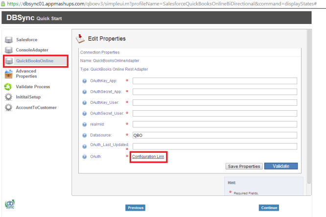 - Click on QuickBooks Online Connector, click on the link Connect to QuickBooks. Sign in to QuickBooks online to authorize DBSync Salesforce Integration for QuickBooks to connect to Intuit.