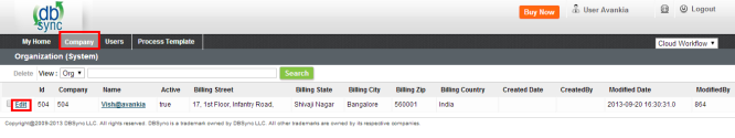 - Login using to dbsync account, go to Company tab, click on edit to view DBSync Org Properties. Click on edit and replace the existing URL with https://dbsync01.appmashups.com/qboev3/login.m