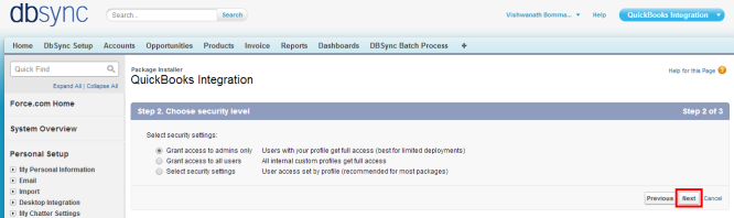 DBSync package (QuickBooks Integration) Installation in Salesforce
